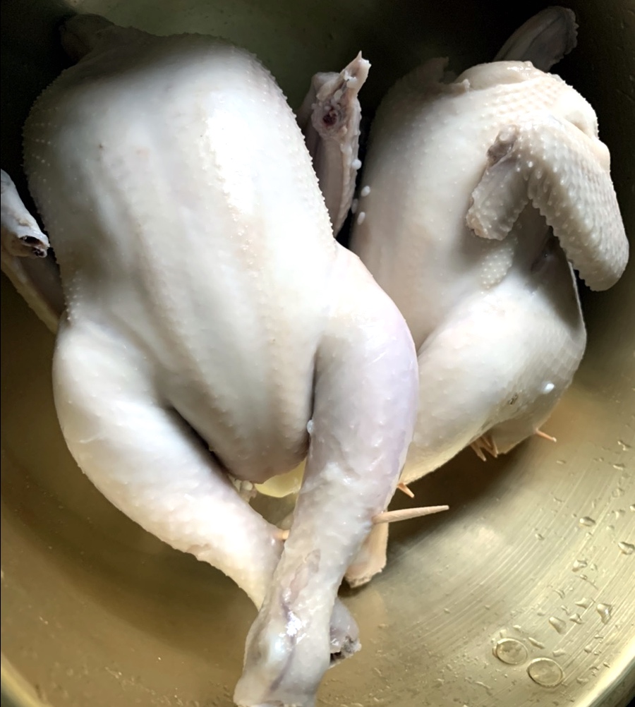 깨끗하게 씻어낸 닭 두마리