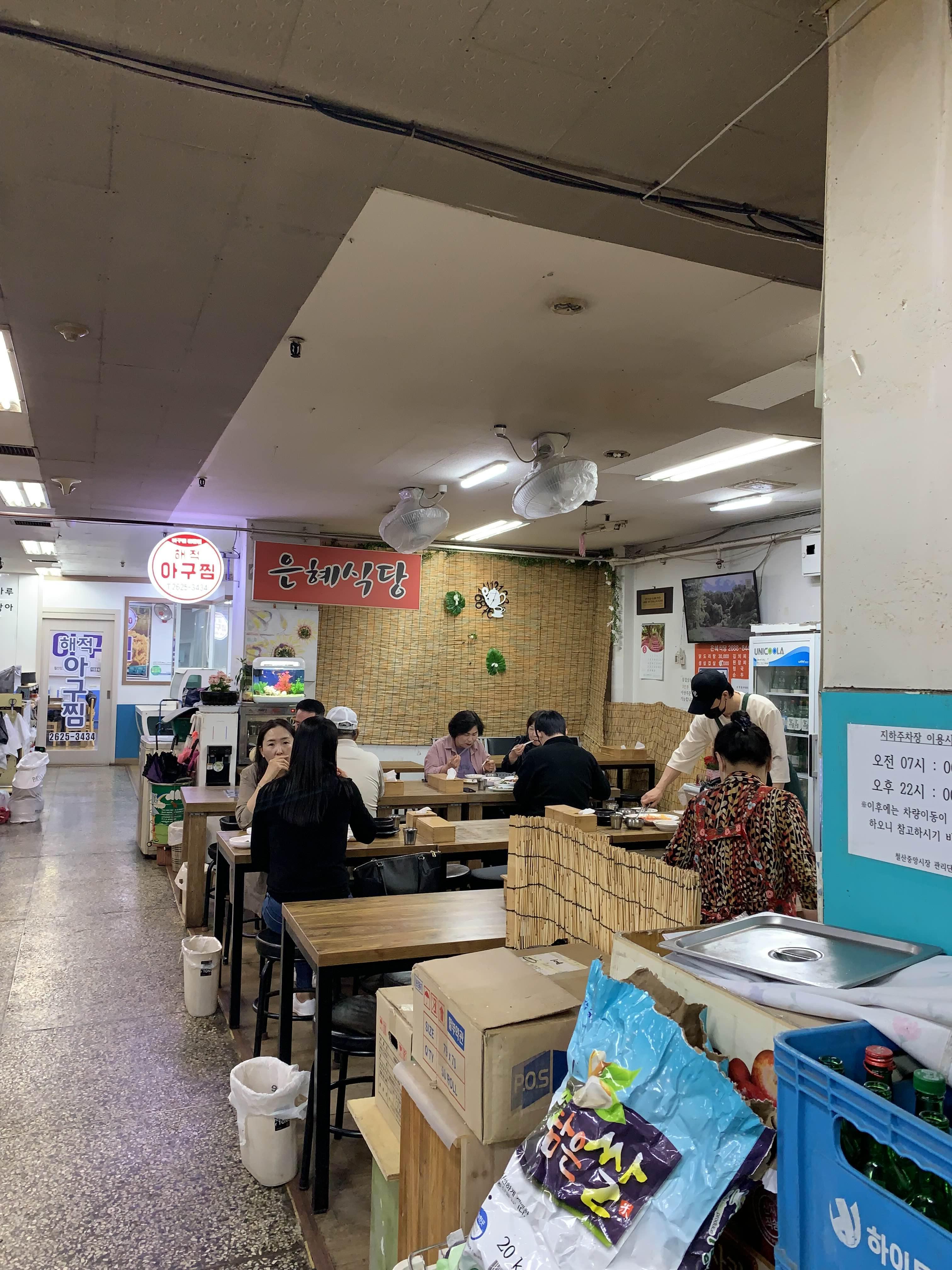 철산역 숨은 맛집을 알려드리겠습니다. 이곳은 중앙시장이라 불리우는 상가 지하1층 은혜식당. 지인이 처음 데려간 이곳에서 오징어볶음을 먹고 감동의 도가니탕.